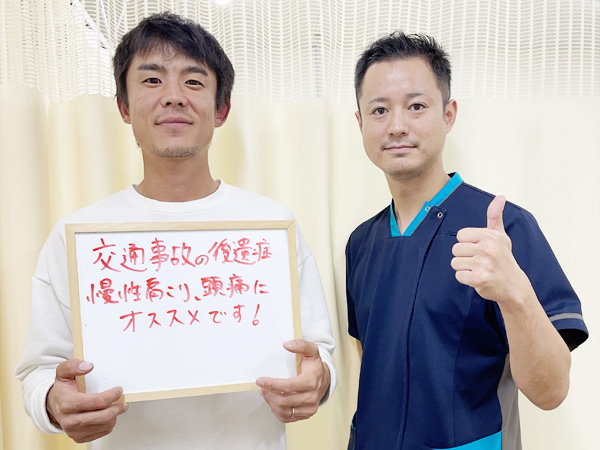 何軒か整骨院に通いましたが、痛みの原因が分からず、根本からの改善ができなくて、つらい症状を諦めかけていましたが、三上先生のマッサージや鍼治療は的確にこりのポイントを突いてくれて、通うたび軽くなっていく症状にとても感動しています。非常にありがたいです。